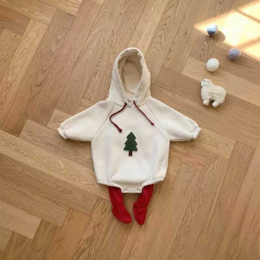 【FCUC20231028002】23秋季韓版聖誕連身衣ins風兒童聖誕樹繡花節日哈衣寶寶嬰兒衣服
