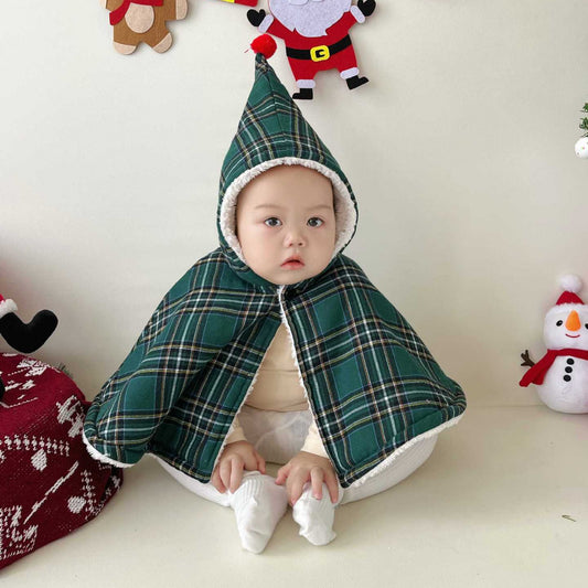 【FCUC20241101002】24韓版兒童披風ins耶誕節格子嬰兒秋冬斗篷寶寶外出保暖披風
