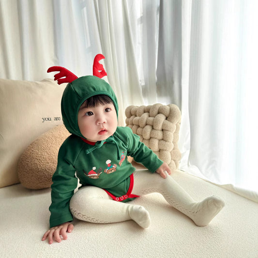【FCUC20241101010】24秋冬韓版嬰兒連體衣ins小鹿印花造型哈衣耶誕節