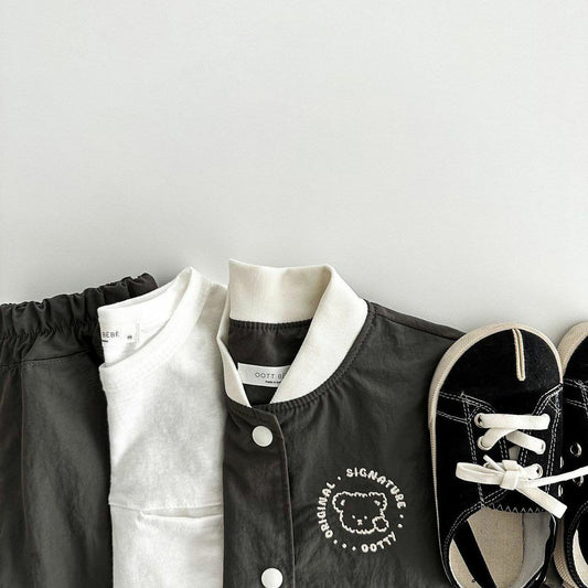 【23240】韓版寶寶外套秋季兒童開衫夾克小童刺繡韓國小熊嬰兒外套女童秋裝
