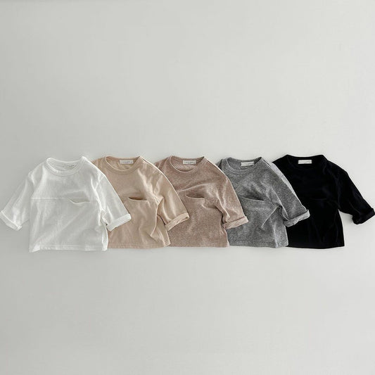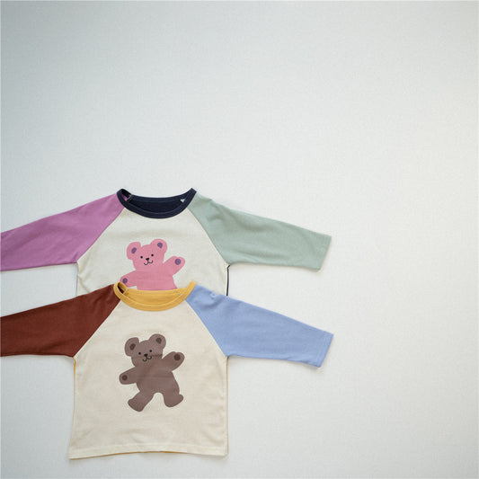 【23223】兒童長袖T純棉拼色男童秋裝寬鬆秋季女童打底衫