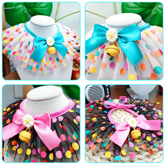 B館【CLS-004】一件代發寵物花邊圍嘴彩色波點網紗圍兜貓咪狗狗領結拍照道具