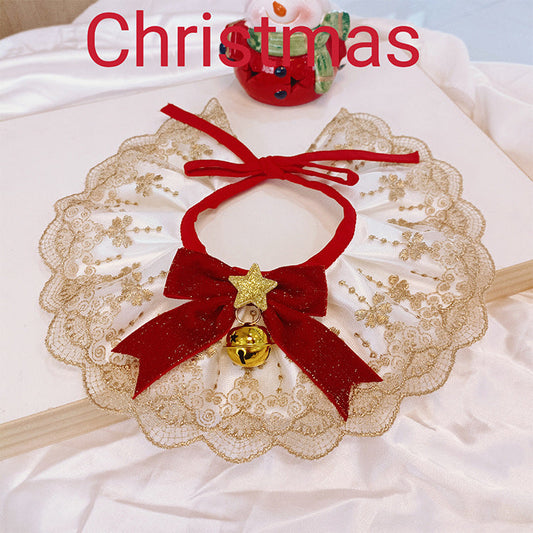 B館【CLS-020】跨境專供寵物圍脖貓咪宮廷風口水巾狗狗聖誕蕾絲圍巾布偶拍照配飾