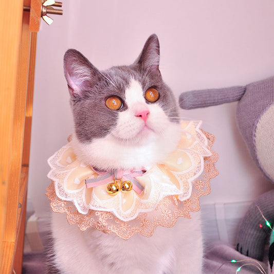 B館【CLS-003】一件代發寵物配飾貓咪狗狗兔子圍脖項圈鈴鐺蕾絲花邊圍嘴可調節