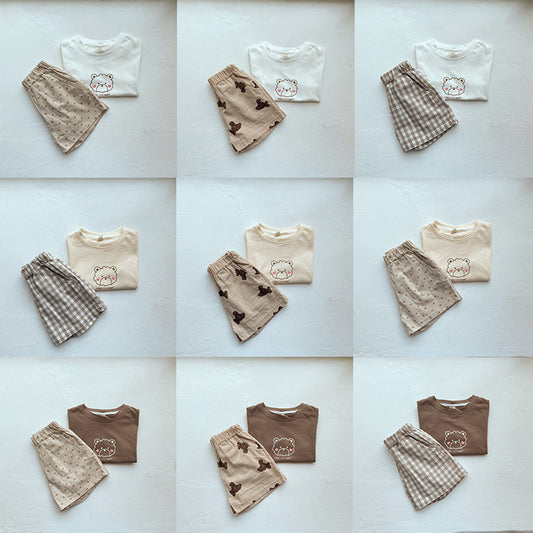【22196】2023夏裝新款韓版嬰幼兒寶寶薄款純棉短袖T恤上衣短褲兩件套裝
